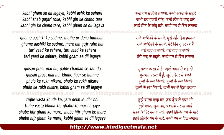 Comments for lyrics of song "Kabhi Gham Se Dil Lagaya"