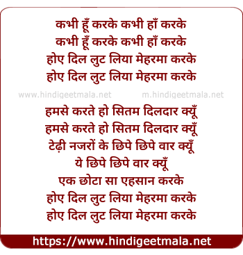 Lyrics of Kabhi Hu Karke Kabhi Ha Karke - कभी हूँ करके कभी हाँ करके