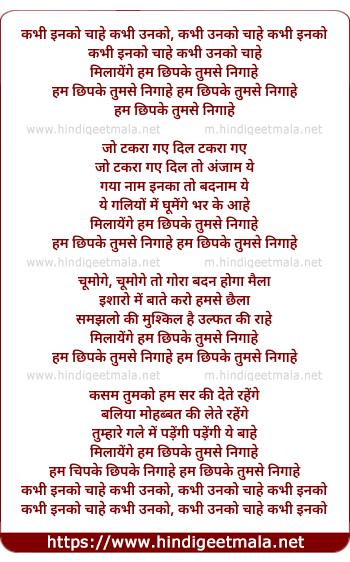 Lyrics of Kabhi Inko Chahe Kabhi Unko - कभी इनको चाहे कभी उनको