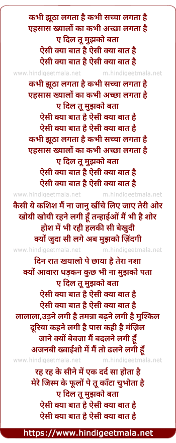 aye dil tu mujhko baata,aise kya baat hai aise kya baat hai