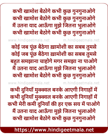 Lyrics of Kabhi Khamosh Baithoge - कभी खामोश बैठोगे कभी कुछ गुनगुनाओगे