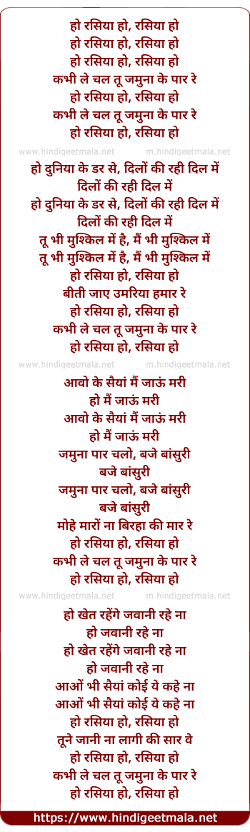 Lyrics of Kabhi Le Chal Tu Jamuna Ke Paar - हो रसिया हो, रसिया हो