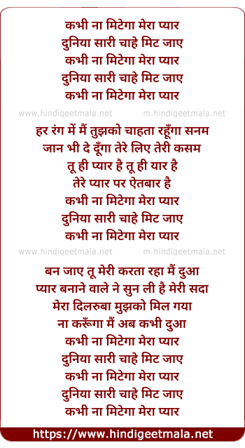 Lyrics of Kabhi Na Mitega Mera - कभी ना मिटेगा मेरा