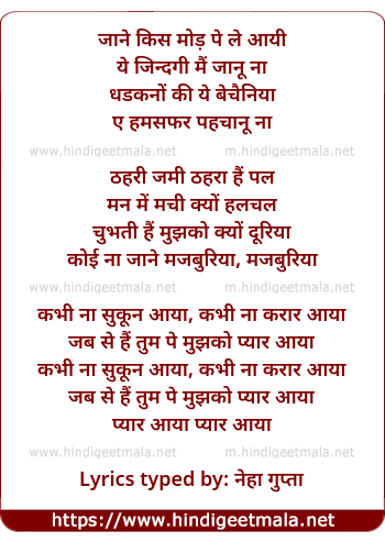 Lyrics of Kabhi Na Sukun Aaya - कभी ना सुकून आया