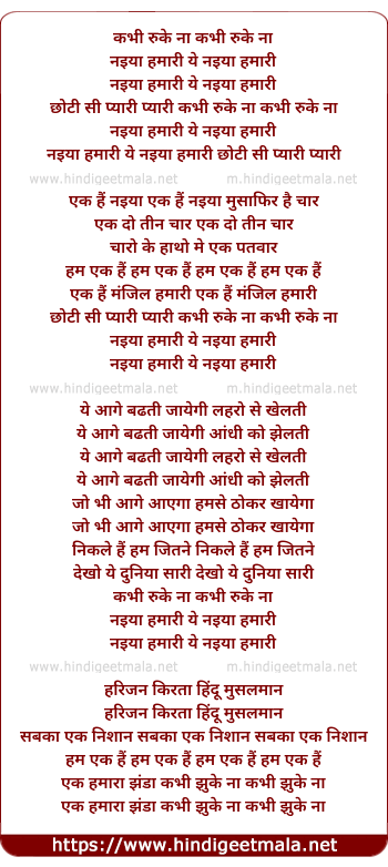 Lyrics of Kabhi Ruke Na - कभी रुके ना कभी रुके ना