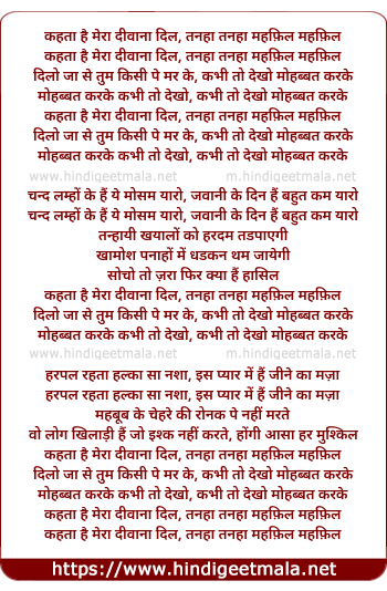 kahta hai mera diwana dil, tanha tanha mahfil mahfil