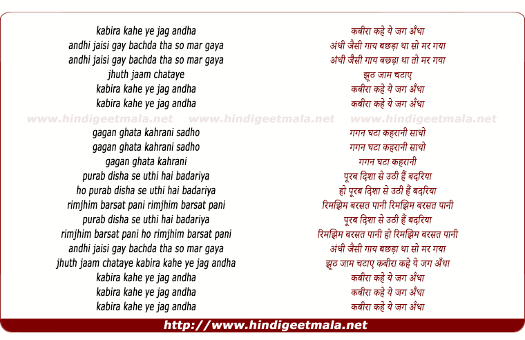 Comments for lyrics of song "Kabira Kahe Ye Jag Andha"