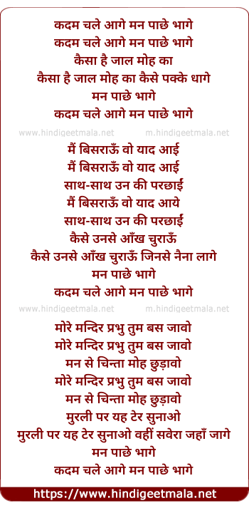 Lyrics of Kadam Chale Aage Man Pachhe Bhage - कदम चले आगे मन पाछे भागे