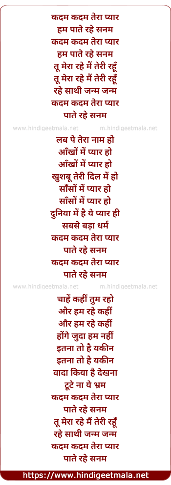 Lyrics of Kadam Kadam Tera Sath - कदम कदम तेरा साथ