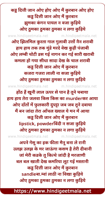 Lyrics of Kadd Ditti Jaan - कड्ड दित्ती जान ओए होए ओए मैं कुरबान ओए होए