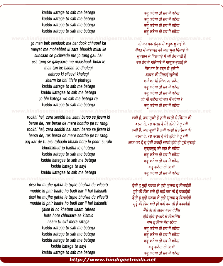 Lyrics of Kaddu Katega - कद्दू कटेगा