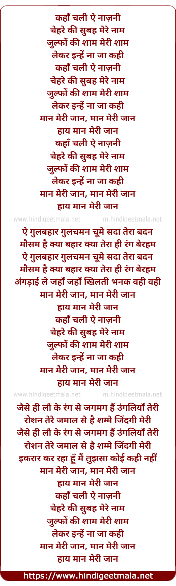 Lyrics of Kaha Chali Aye Nazni - कहाँ चली ऐ नाज़नी
