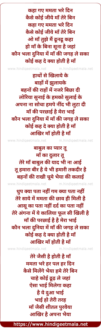 Lyrics of Kaha Gaye Mamta Bhare Din (Version 2) - कहा गए ममता भरे दिन