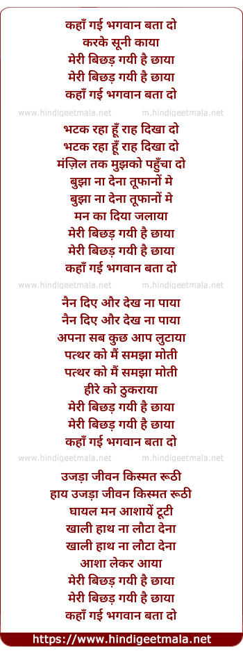 Lyrics of Kaha Gayi Bhagwan Bata De - कहाँ गई भगवान बता दो
