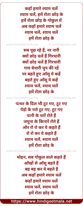 Lyrics of Kaha Hamare Chale - कहाँ हमारे श्याम चलें