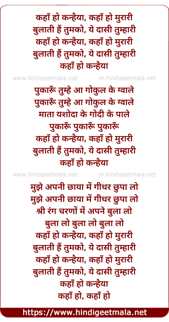Lyrics of Kaha Ho Kanhaiyaa - कहाँ हो कन्हैया