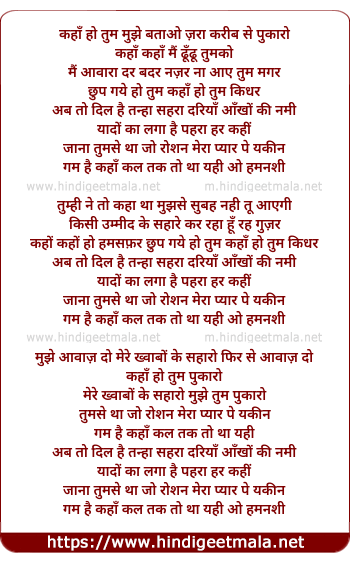 Lyrics of Kaha Ho Tum Mujhe Bataao - कहाँ हो तुम मुझे बताओ