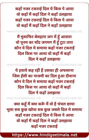 Lyrics of Kaha Nazar Takrayi Dil Ye Kis Par - कहाँ नजर टकराई दिल ये किस पर
