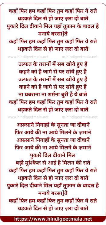 Lyrics of Kaha Phir Hum Kaha Phir Tum - कहाँ फिर हम कहाँ फिर तुम