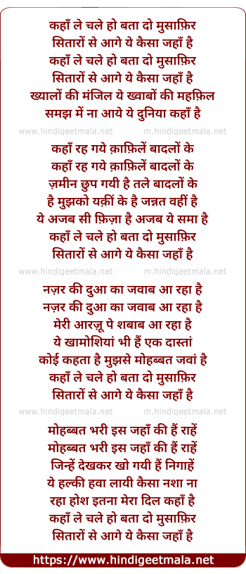 Lyrics of Kahaan Le Chale Ho Bataado Musaafir - कहाँ ले चले हो बता दो मुसाफ़िर