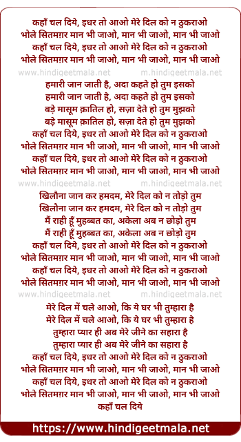 Lyrics of Kahan Chal Diye, Idhar Toh Aao - कहाँ चल दिये, इधर तो आओ