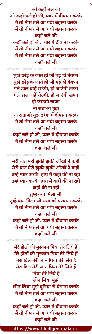 Lyrics of Kahan Chale O Ho Ji - ओ कहाँ चले जी