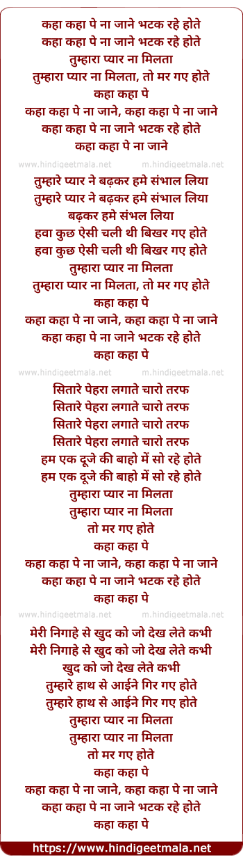 Lyrics of Kahan Kahan Pe Najaane Bhatak Rahe Hote - कहाँ कहाँ पे ना जाने भटक रहे होते