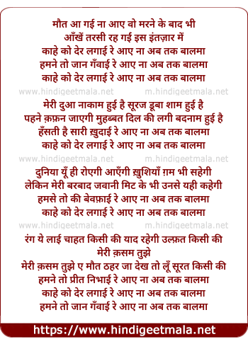 Lyrics of Maut Aa Gayi Na Aae Vo Marne Ke Baad Bhi - मौत आ गई न आए वो मरने के बाद भी