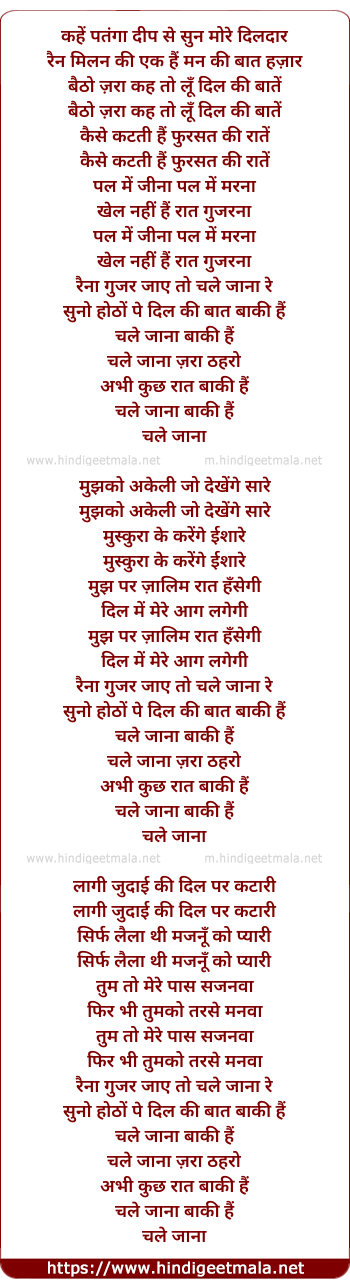 Lyrics of Kahe Patanga Deep Se Sun More Dildar - कहें पतंगा दीप से सुन मोरे दिलदार