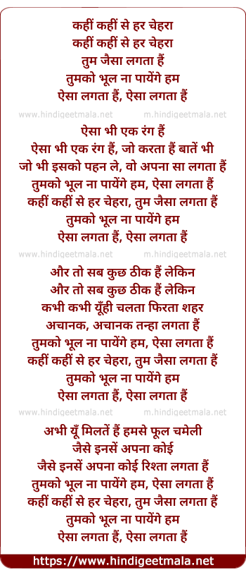 Lyrics of Kahee Kahee Se Har Chehra - कहीं कहीं से हर चेहरा