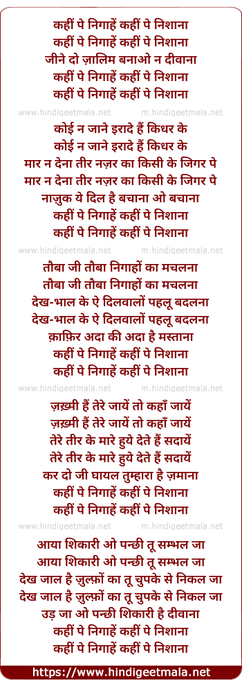 Lyrics of Kahee Pe Nigahe Kahee Pe Nishana - कहीं पे निगाहें कहीं पे निशाना