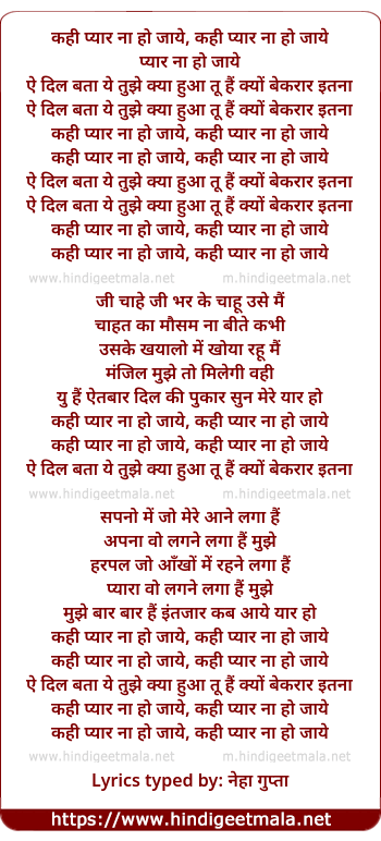 Lyrics of Kahi Pyar Naa Ho Jaye - कही प्यार ना हो जाये