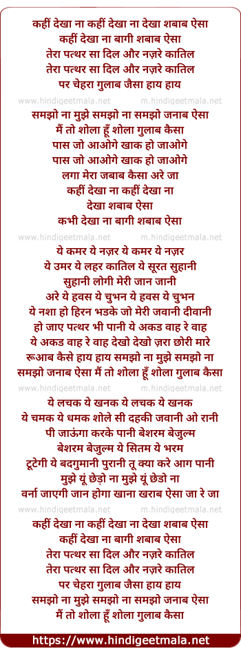 Lyrics of Kahi Dekha Na Kahi Dekha Na Shabaab - कहीं देखा ना कहीं देखा ना शबाब
