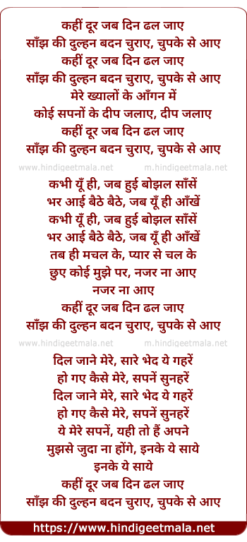 Lyrics of Kahi Door Jab Din Dhal Jaaye - कहीं दूर जब दिन ढल जाए