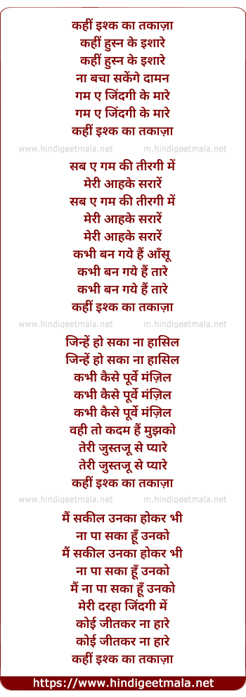 Lyrics of Kahi Ishq Ka Taqaza - कहीं इश्क का तकाज़ा