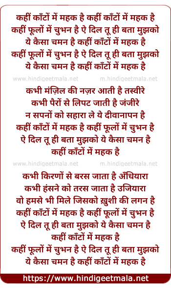Lyrics of Kahi Kaanto Me Mehak Hai, Kahin Phoolo Me Chuban Hai - कहीं काँटों में महक है, कहीं फूलों में चुभन है