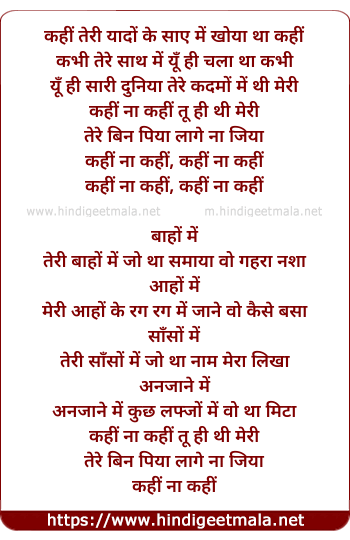 Lyrics of Kahi Na Kahi - कहीं ना कहीं