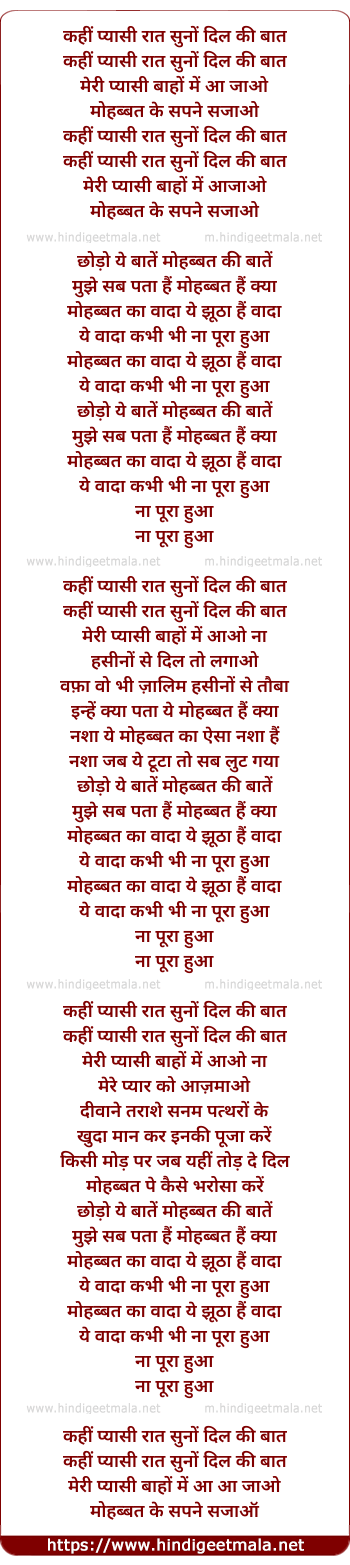 Lyrics of Kahi Pyasi Raat - कहीं प्यासी रात