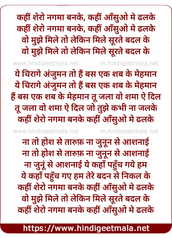 Lyrics of Kahin Sher O Naghma - कहीं शेरो नगमा बनके कहीं आँसुओ मे ढलके
