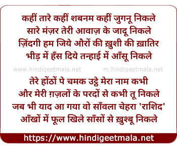 Lyrics of Kahin Taare Kahin Shabanam - कहीं तारे कहीं शबनम कहीं जुगनू निकले