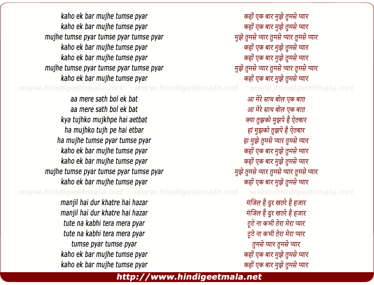 Lyrics of Kaho Ek Baar Mujhe Tumse Pyar - कहों एक बार मुझे तुमसे प्यार
