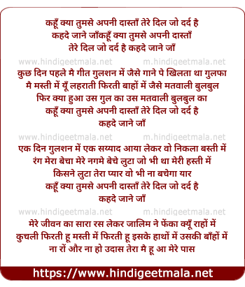 Lyrics of Kahu Kya Tumse Apni Daastan - कहूँ क्या तुमसे अपनी दास्ताँ