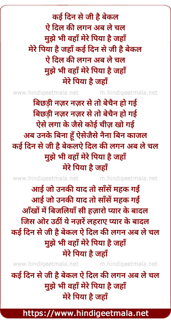 Lyrics of Kai Din Se Ji Hai Bekal - कई दिन से जी है बेकल