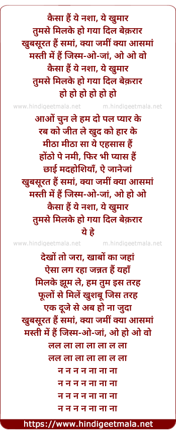 Lyrics of Kaisa Hai Yeh Nasha - कैसा हैं ये नशा, ये खुमार