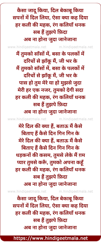 Lyrics of Kaisa Jaadu Kiya - कैसा जादू किया, दिल बेकाबू किया