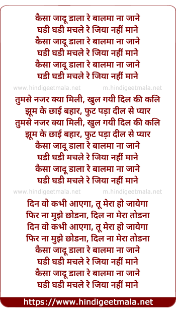 Lyrics of Kaisa Jadu Dala Re Balma Na Jane - कैसा जादू डाला रे बालमा ना जाने