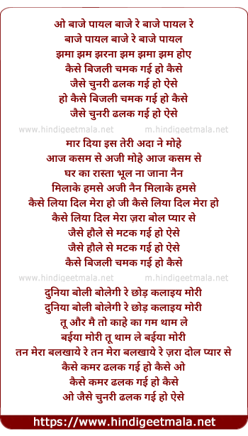Lyrics of Kaise Bijli Chamak Gayi Ho Kaise, Jaise Chunari Dhalak Gayi Ho Aise - कैसे बिजली चमक गई हो कैसे, जैसे चुनरी ढलक गई हो ऐसे