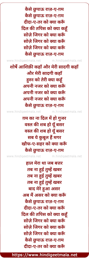 Lyrics of Kaise Chhupau - कैसे छुपाऊ राज़-ए-ग़म