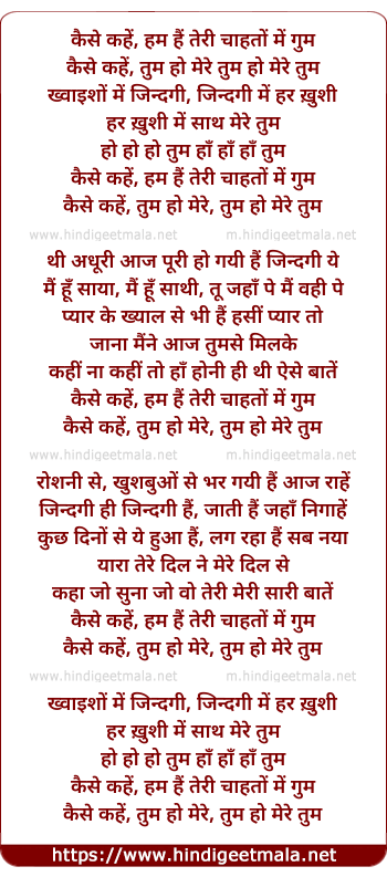 Lyrics of Kaise Kahe, Ham Hai Teree Chahato Me Gum - कैसे कहें, हम हैं तेरी चाहतों में गुम