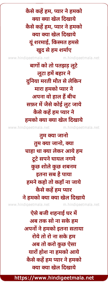Kaise Kahen Ham Pyaar Ne Hamako Kya Kya Khel Dikhaaye - कैसे कहें हम, प्यार ने हमको क्या क्या खेल दिखाये
